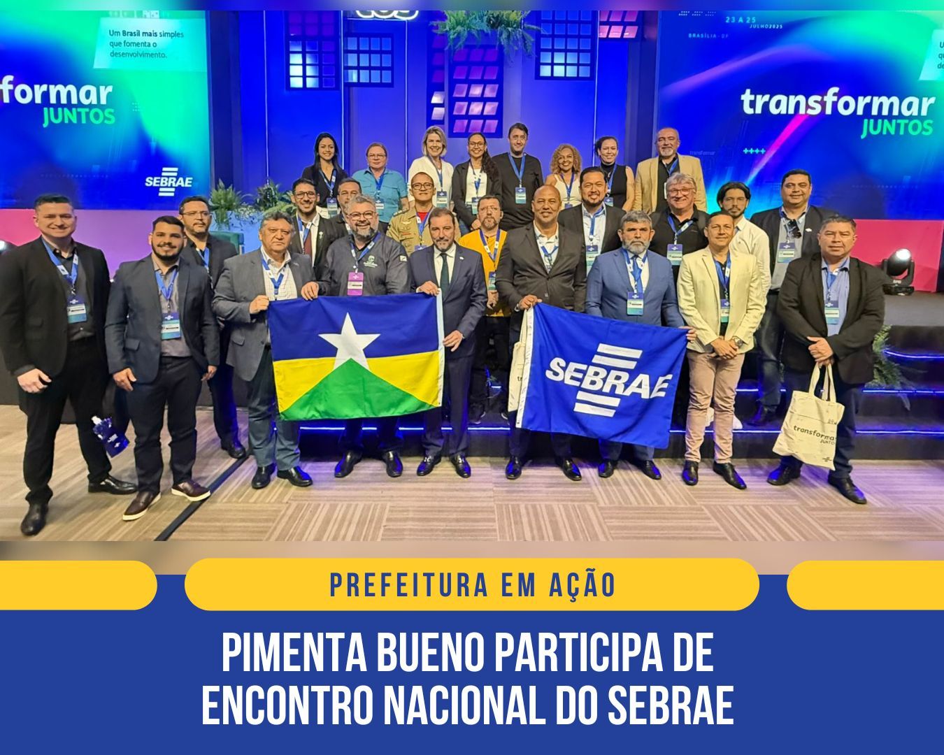 A Prefeitura de Pimenta Bueno participou do Transformar Juntos 2025, realizado entre os dias 23 e 25 de julho, em Brasília. O município foi representado pelo agente de desenvolvimento Gabriel Souza Almeida, que integrou a comitiva de Rondônia no evento promovido pelo Sebrae Nacional.