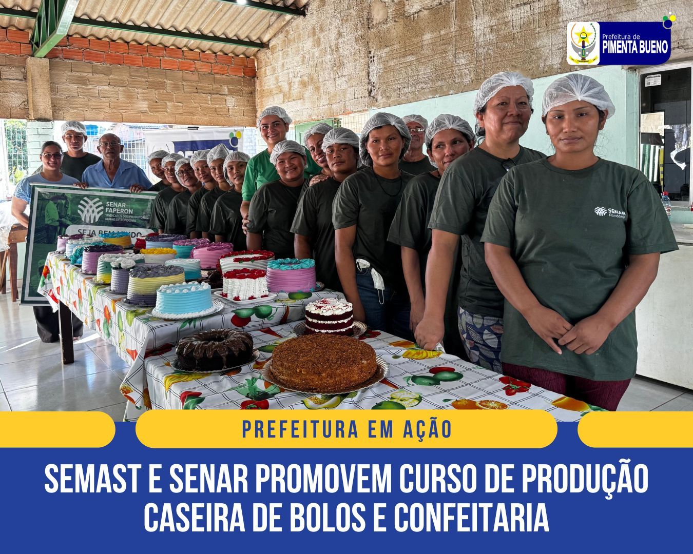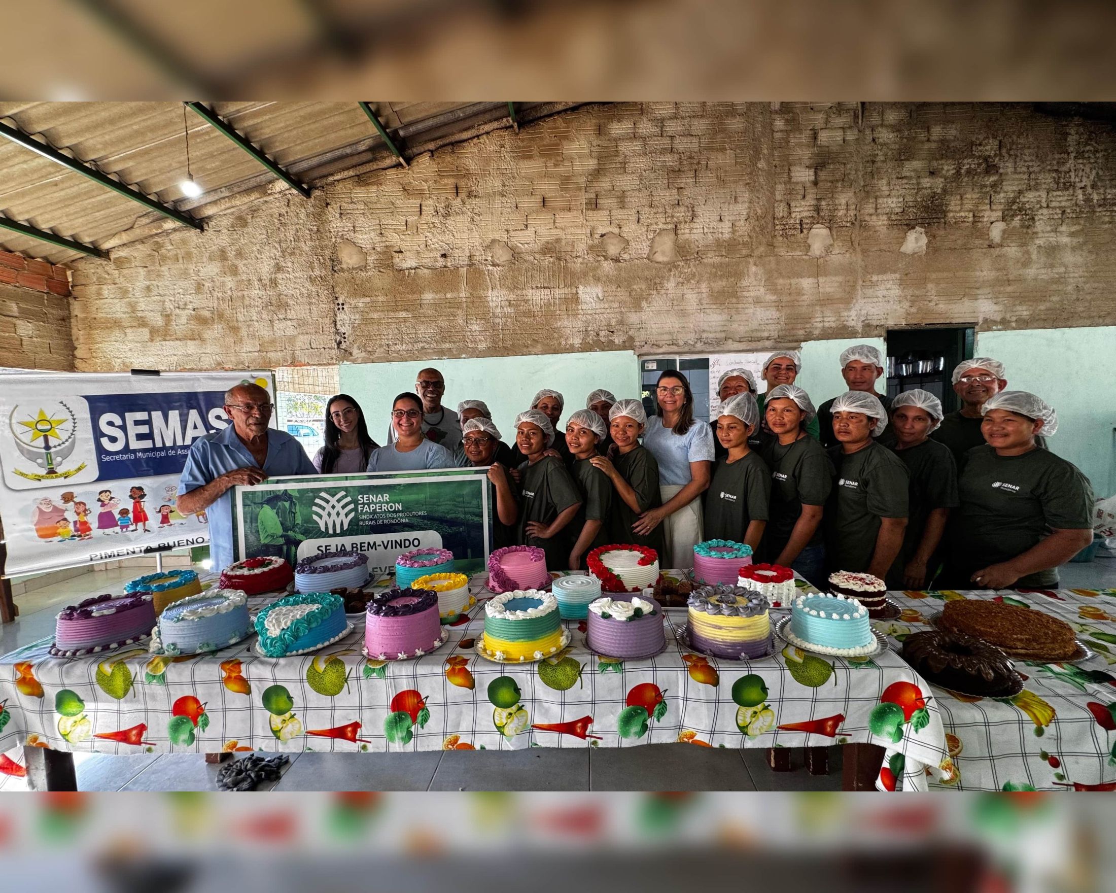 A Secretaria Municipal de Assistência Social e Trabalho (Semast), em parceria com o Serviço Nacional de Aprendizagem Rural de Rondônia (Senar Rondônia), promoveu o curso de Produção Caseira de Bolos e Confeitaria, no Centro de Educação e Treinamento Canaã. A capacitação foi realizada de 21 a 25 de julho, com aulas ministradas pela professora Dulcilene Santos Silva Primo.