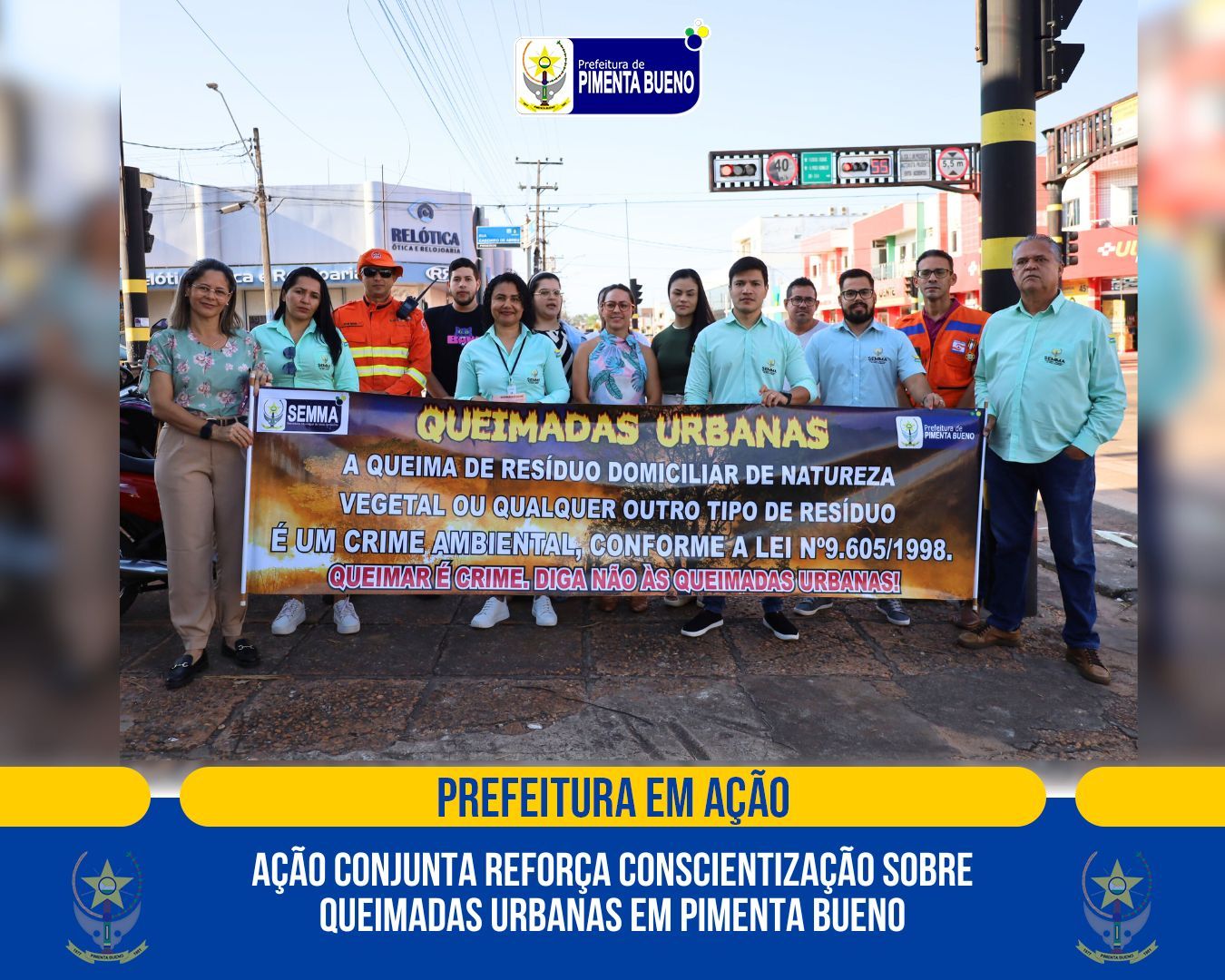 A Secretaria Municipal de Meio Ambiente (Semma), em parceria com a Defesa Civil e o Corpo de Bombeiros de Pimenta Bueno, realizou na segunda-feira, 28 de julho, uma ação de conscientização sobre as queimadas urbanas. O trabalho foi desenvolvido em formato de pit stop, com abordagem direta à população em pontos estratégicos da cidade.