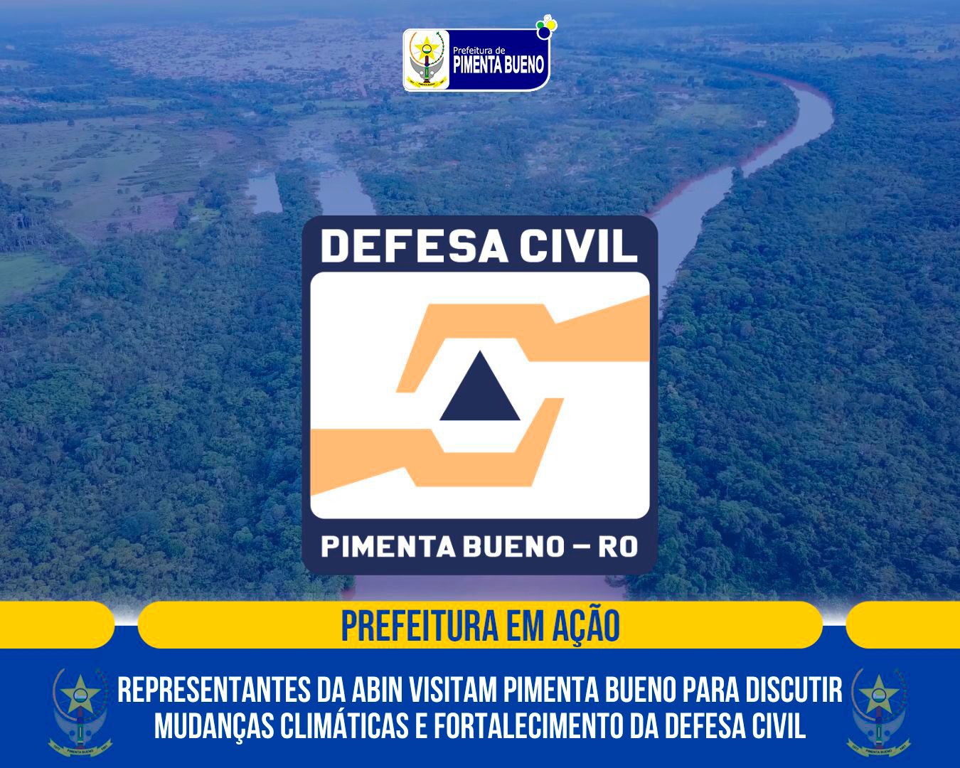 A Prefeitura de Pimenta Bueno recebeu nesta quarta-feira (27/08) representantes da Agência Brasileira de Inteligência (ABIN), acompanhados do representante da instituição em Rondônia. O encontro teve como foco as mudanças climáticas e seus impactos sobre infraestruturas estratégicas do município.
