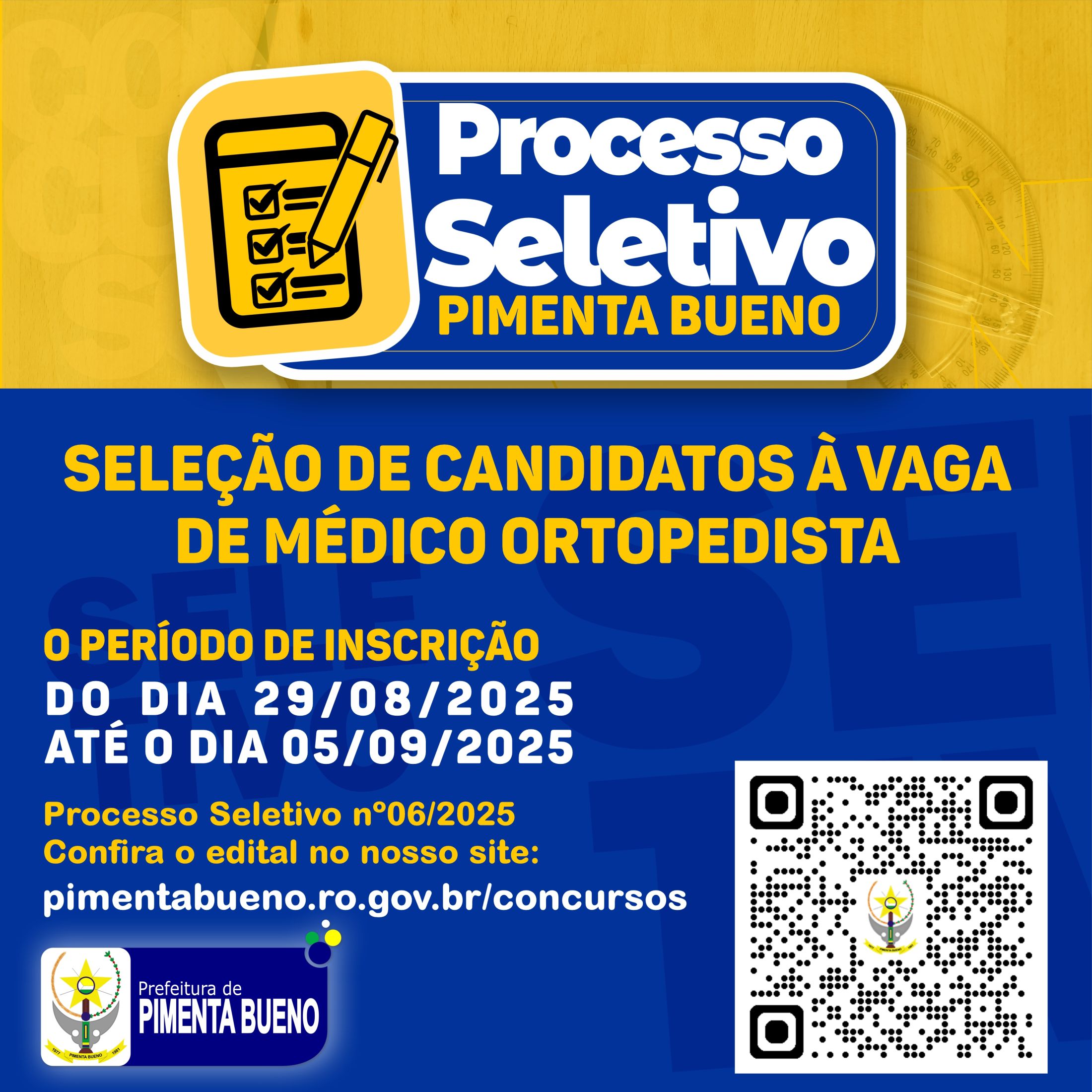 A Prefeitura de Pimenta Bueno, por meio da Secretaria Municipal de Saúde e da Comissão Organizadora nomeada pela Portaria Municipal nº 560/2025, torna público a abertura de Teste Seletivo Simplificado para contratação temporária de profissionais, visando atender às ações do Programa Nacional de Expansão e Qualificação da Atenção Ambulatorial Especializada (PMAE), conforme Resolução nº 118/2025/SESAU-CIB e Proposta de Custeio MAC 63000686779202500.