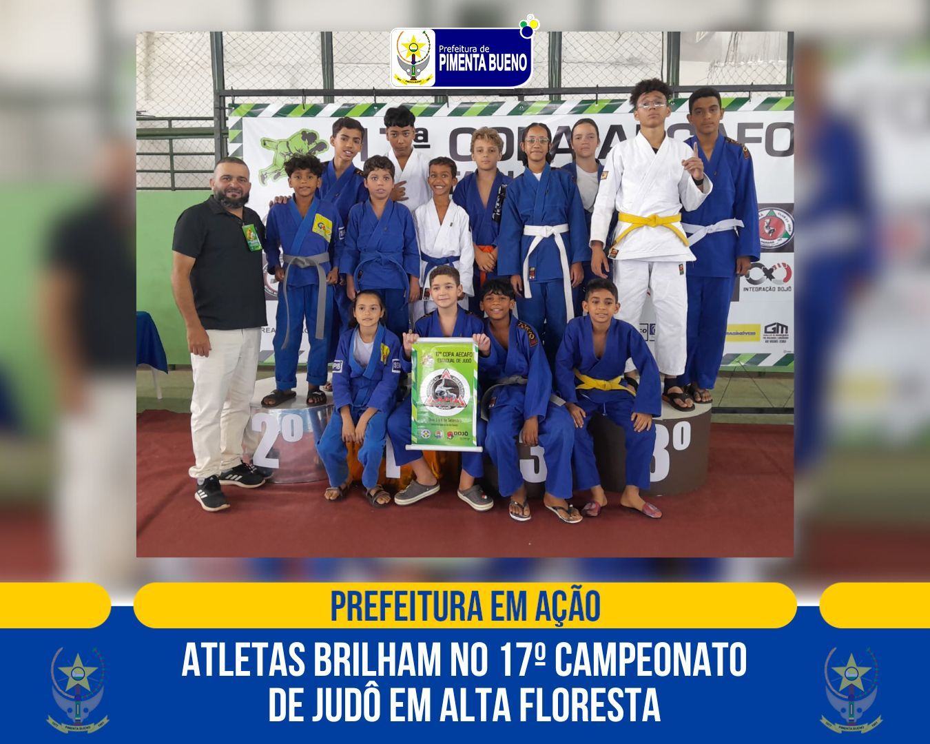 A cidade de Pimenta Bueno foi destaque no 17º Campeonato de Judô, realizado neste fim de semana em Alta Floresta. A participação foi viabilizada pela parceria da Prefeitura de Pimenta Bueno, por meio da AMPIB- Autarquia Municipal de Esporte e Cultura, com a APIJ – Associação Pimentense de Judô, através do projeto Caminho Suave(guiada pelo Professor Alex Tenório)