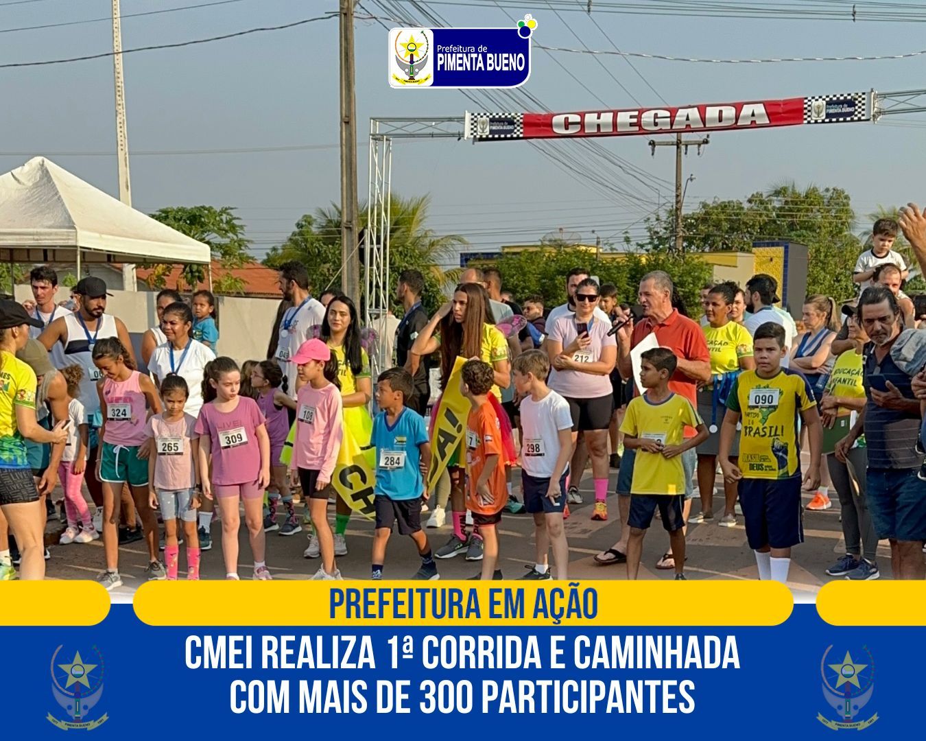A Prefeitura de Pimenta Bueno, por meio da Secretaria Municipal de Educação (SEMED) e da CMEI Profª Maria Aparecida Gomes, promoveu no último domingo (14/09) a 1ª Corrida e Caminhada da unidade, reunindo 330 participantes entre adultos e crianças em uma manhã marcada por saúde, integração e solidariedade.
