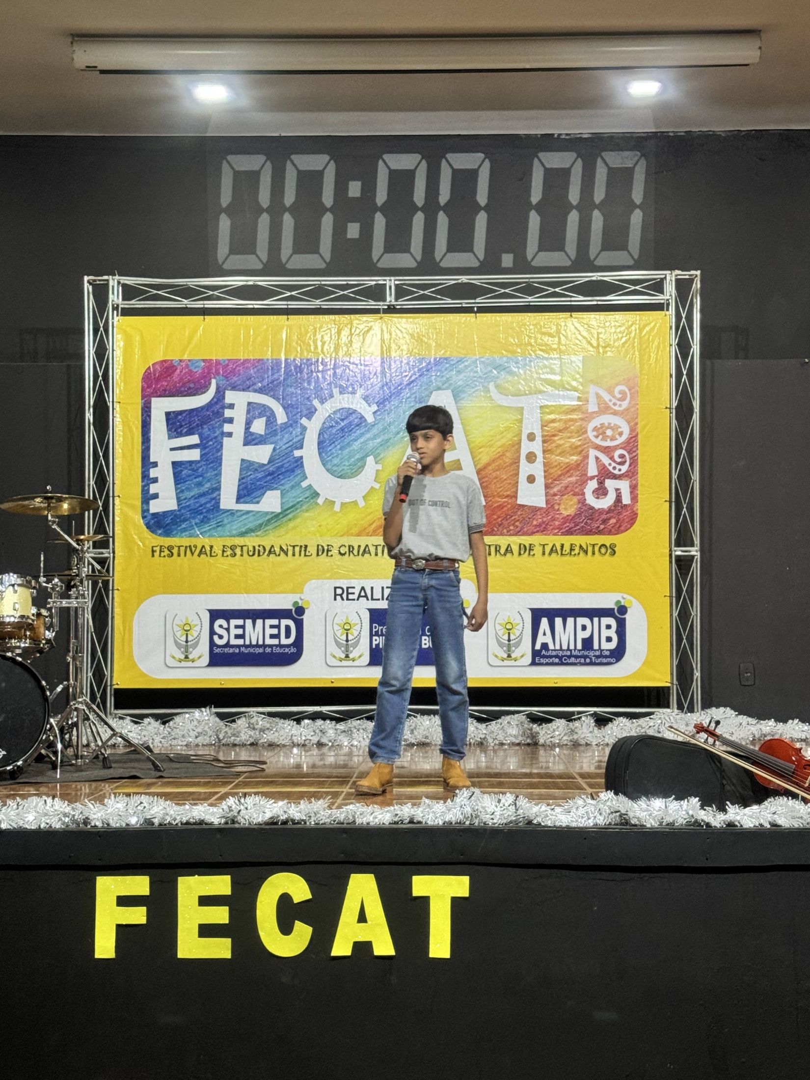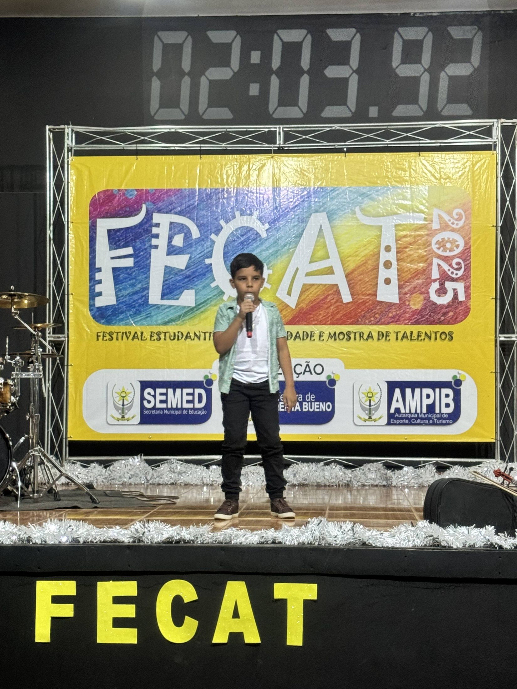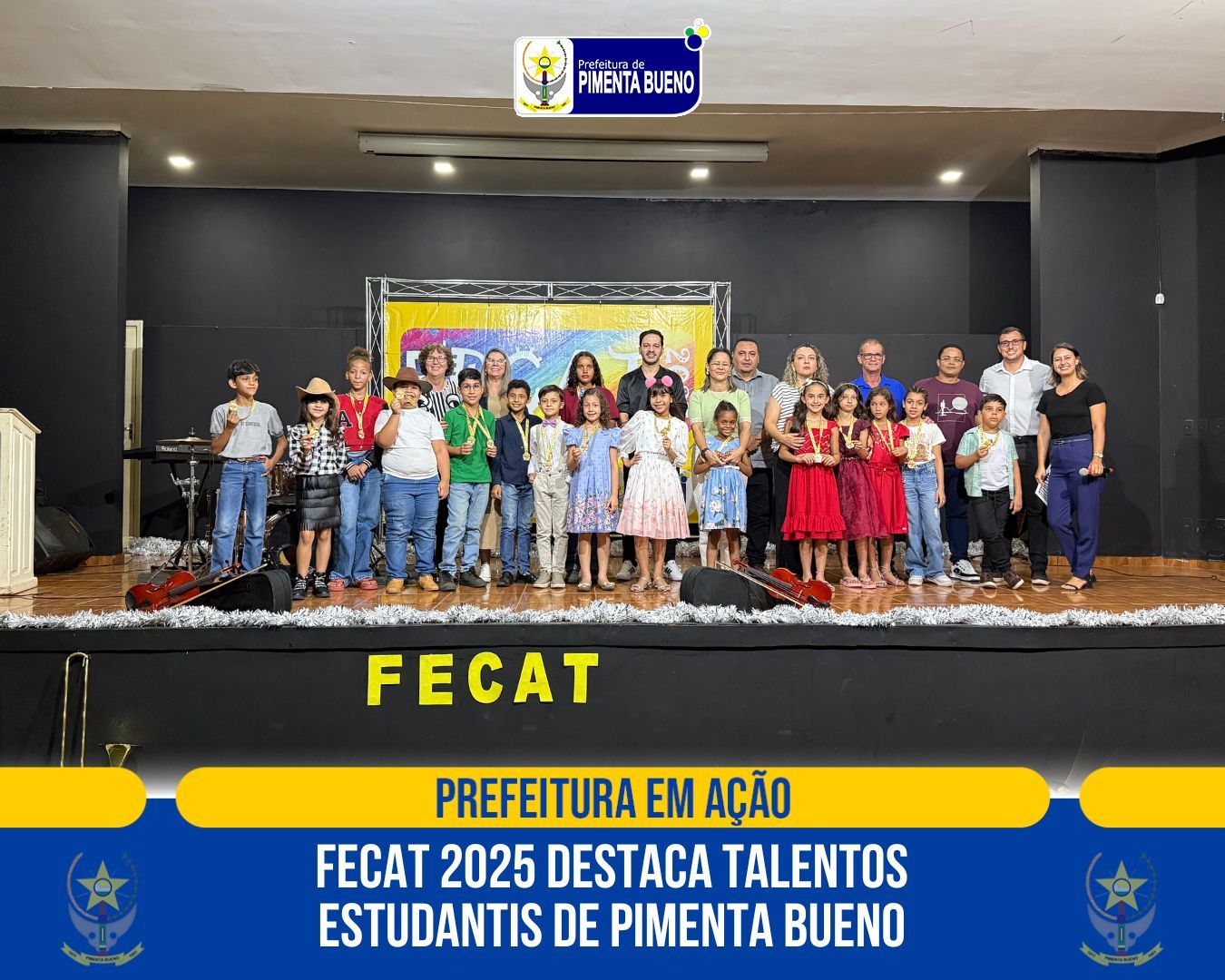 O FECAT 2025 – Festival Estudantil de Criatividade e Mostra de Talentos está reunindo os jovens talentos da rede municipal de ensino de Pimenta Bueno. O evento, que valoriza a criatividade, a dedicação e a expressão artística dos alunos, é uma realização da Prefeitura de Pimenta Bueno, por meio da Autarquia Municipal de Esporte, Cultura e Turismo (AMPIB) e da Secretaria Municipal de Educação (SEMED).