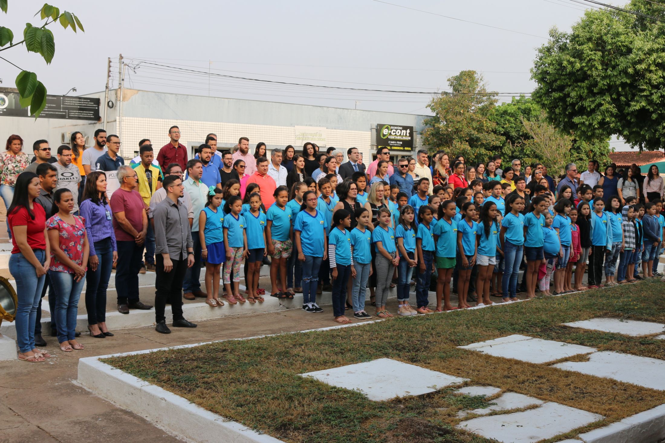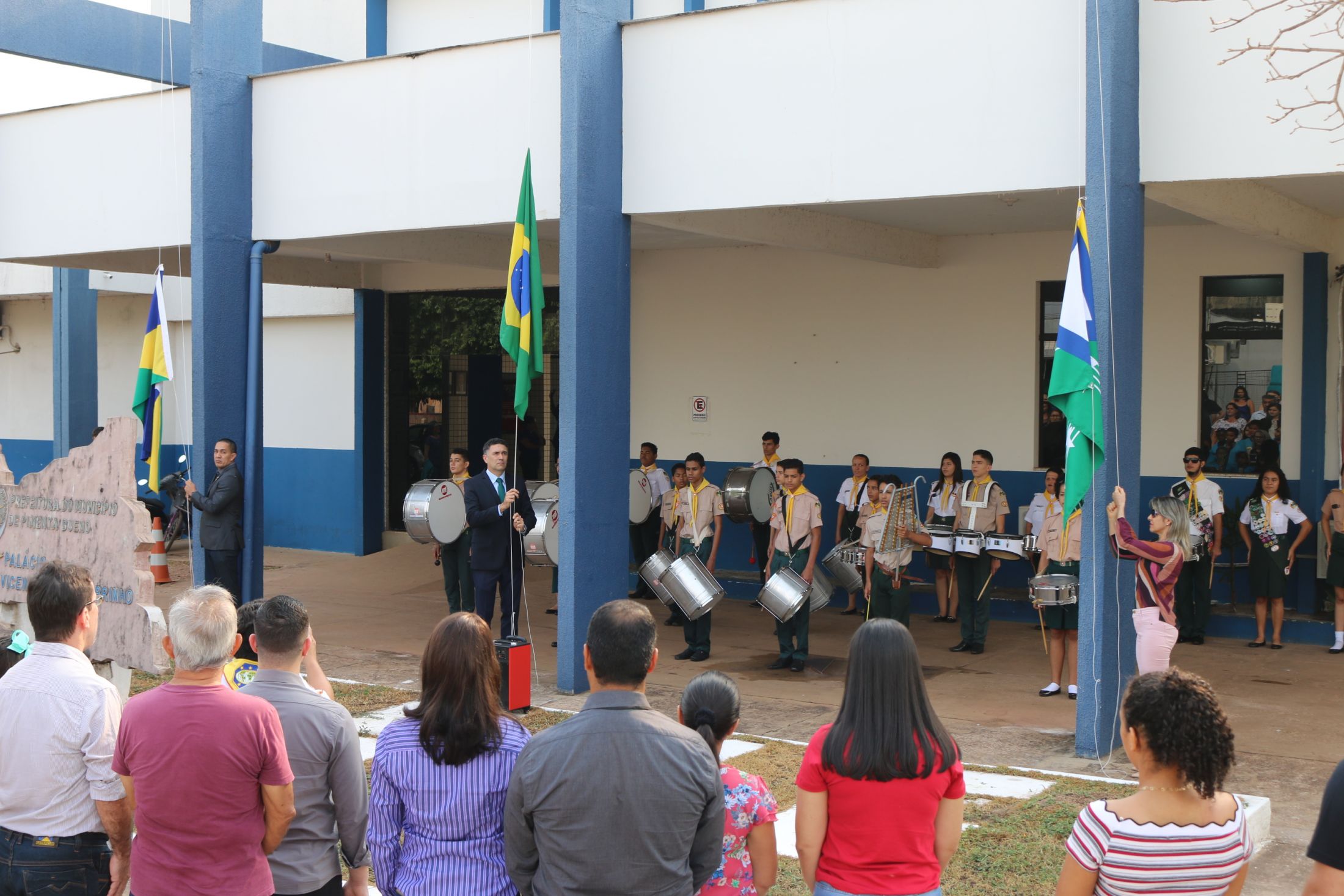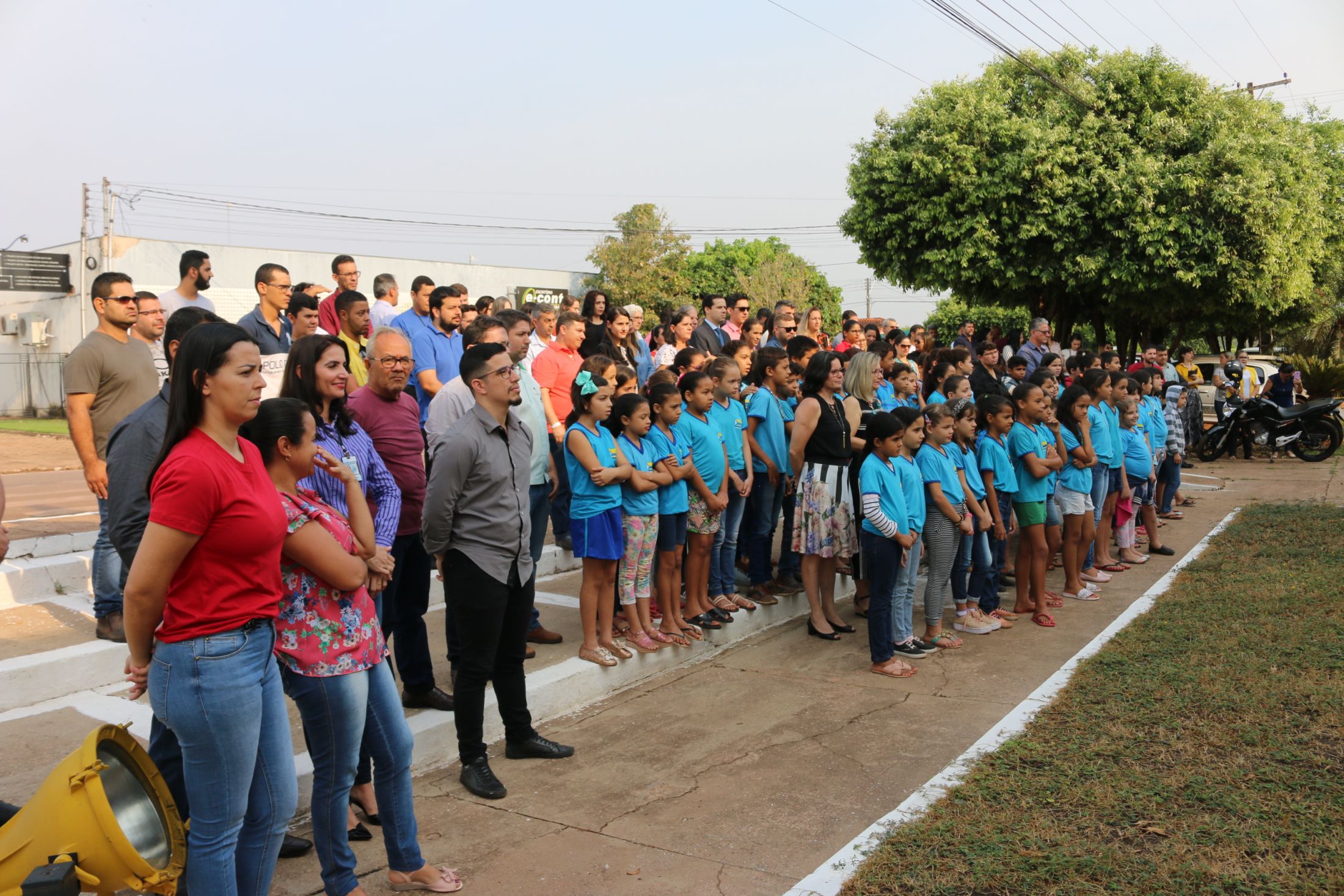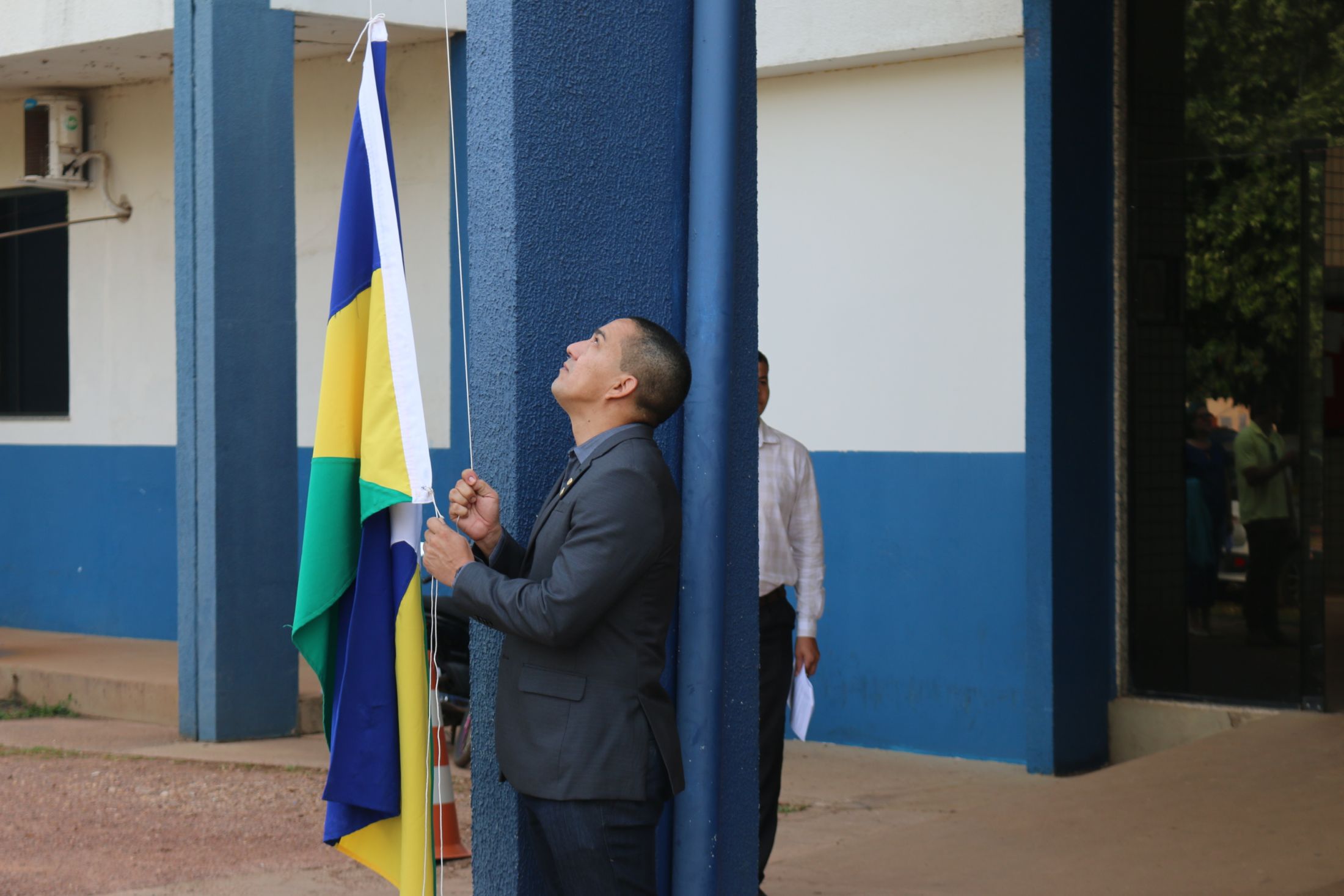 Sob a execução do Hino Nacional, a Bandeira do Brasil foi hasteada pelo prefeito Delegado Araújo, a Bandeira do Estado de Rondônia pelo deputado estadual, Sargento Eyder Brasil e a Bandeira Municipal pela servidora pública Alzeni Alves da Silva. Na sequência, as autoridades fizeram os pronunciamentos enaltecendo a importância da semana da pátria, para o resgate do patriotismo a nação brasileira.