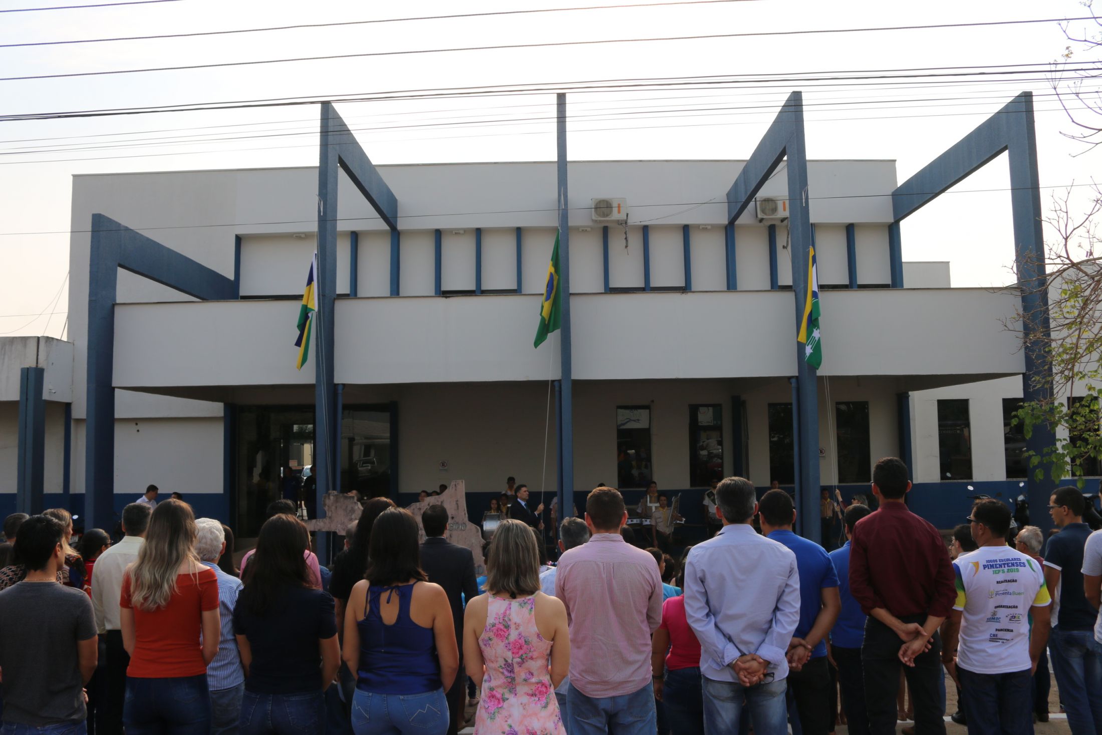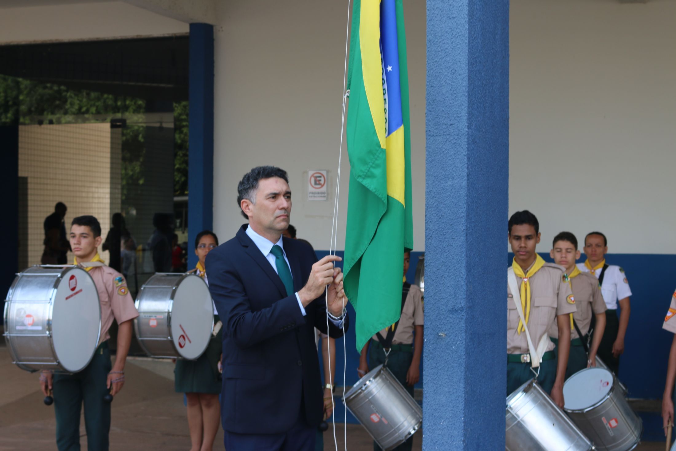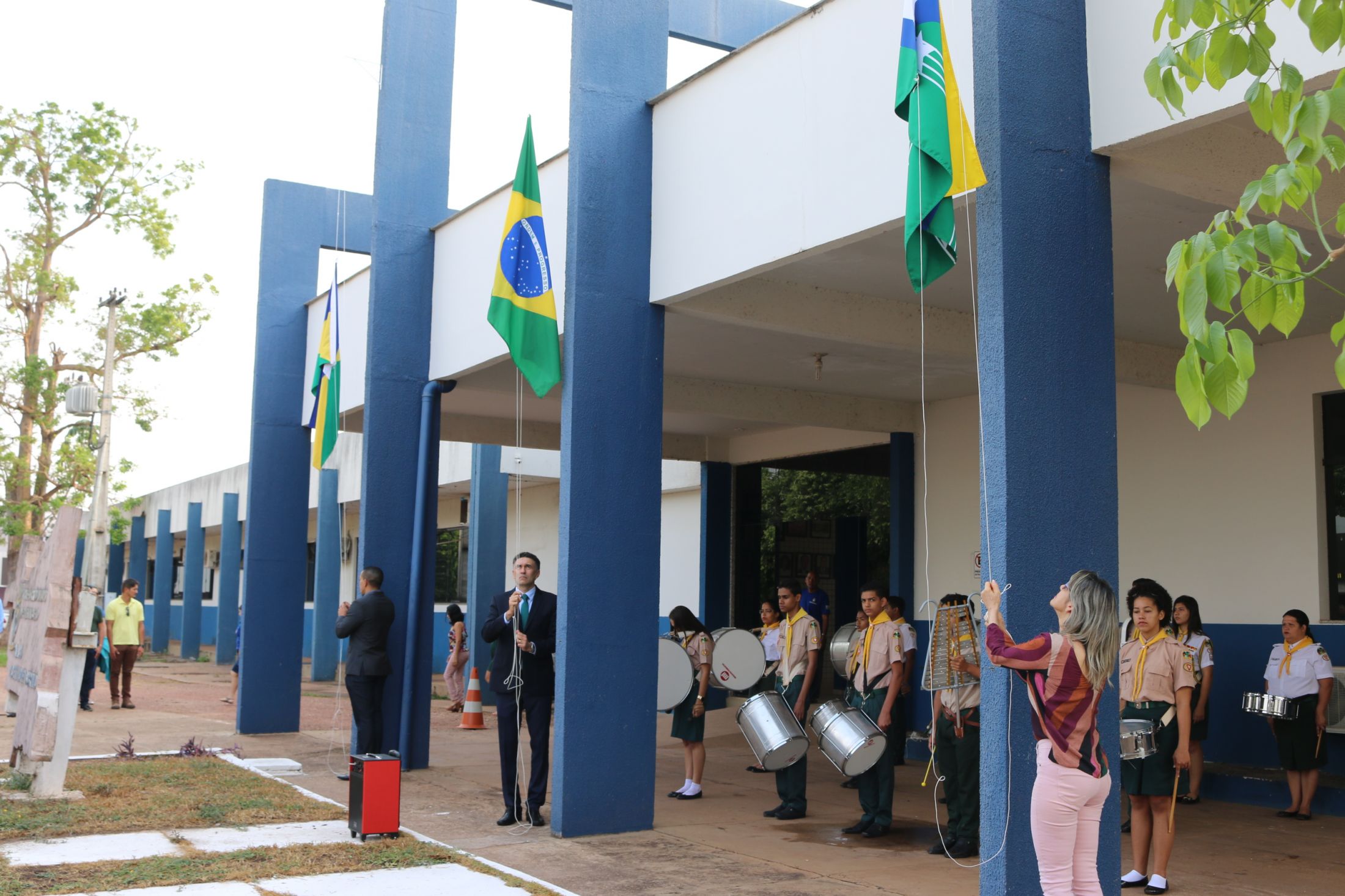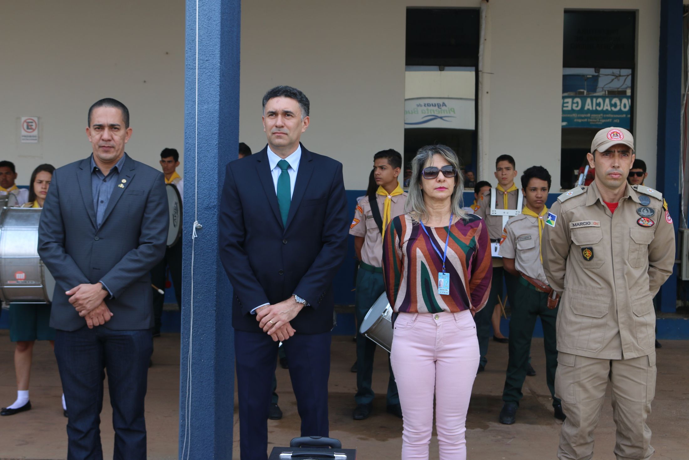 Sob a execução do Hino Nacional, a Bandeira do Brasil foi hasteada pelo prefeito Delegado Araújo, a Bandeira do Estado de Rondônia pelo deputado estadual, Sargento Eyder Brasil e a Bandeira Municipal pela servidora pública Alzeni Alves da Silva. Na sequência, as autoridades fizeram os pronunciamentos enaltecendo a importância da semana da pátria, para o resgate do patriotismo a nação brasileira.