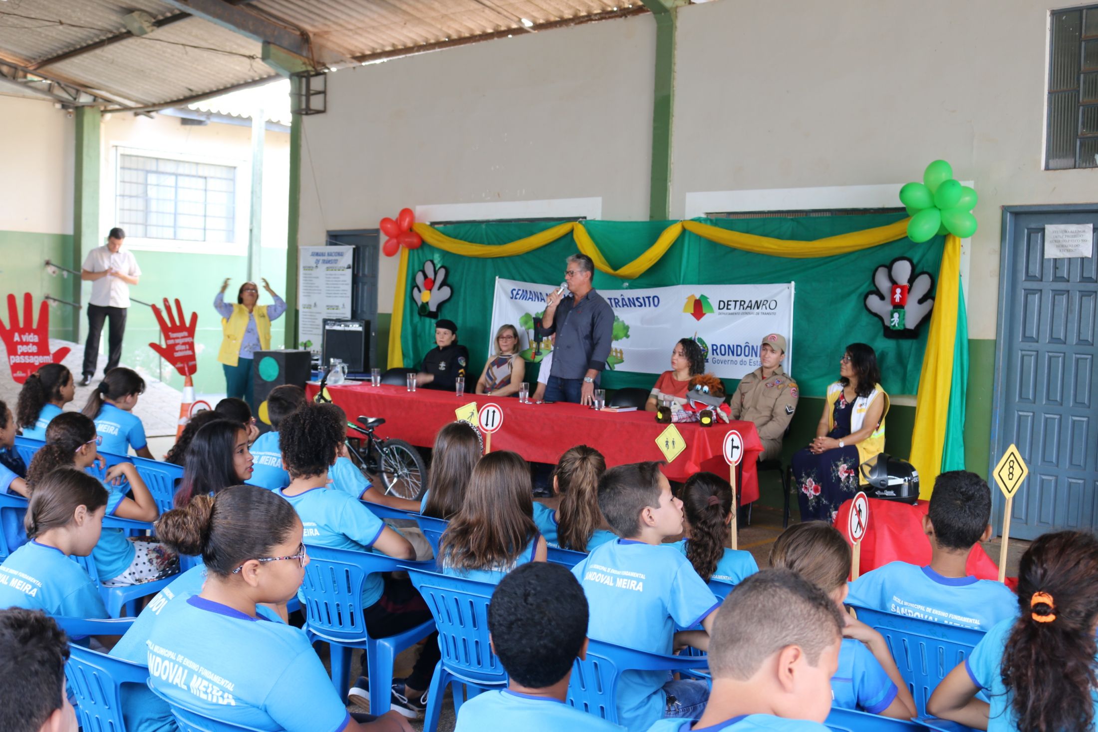 A Prefeitura de Pimenta Bueno por meio da Coordenadoria Municipal de Trânsito - COMTRAN lançou hoje (17) a Semana Nacional de Trânsito, campanha voltada para a conscientização da sociedade sobre um trânsito seguro e que tem por objetivo reduzir o número de acidentes no trânsito. O evento ocorreu na escola Sandoval Meira e envolveu alunos, professores e convidados. Este ano, o tema é "No Trânsito o Sentido é a Vida" e a semana ocorrerá no período de 18 a 25 de setembro.