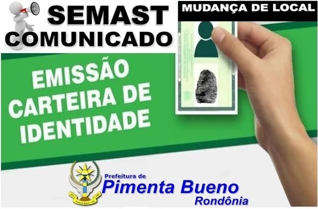 do setor de RG serão realizados na SEMAST a partir do dia 12