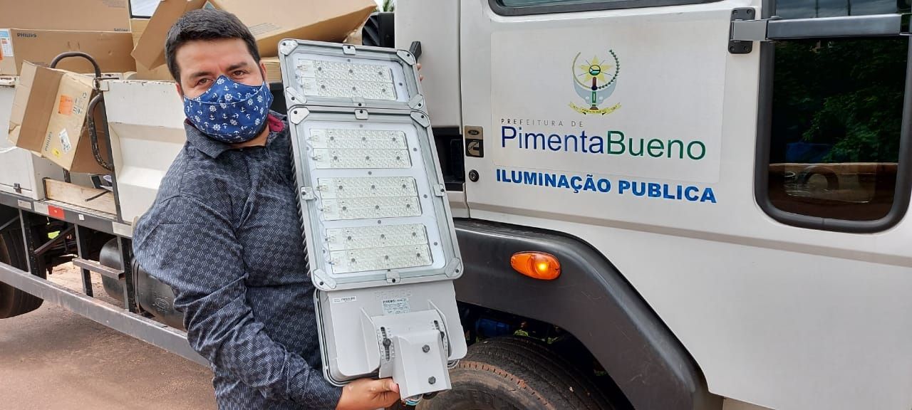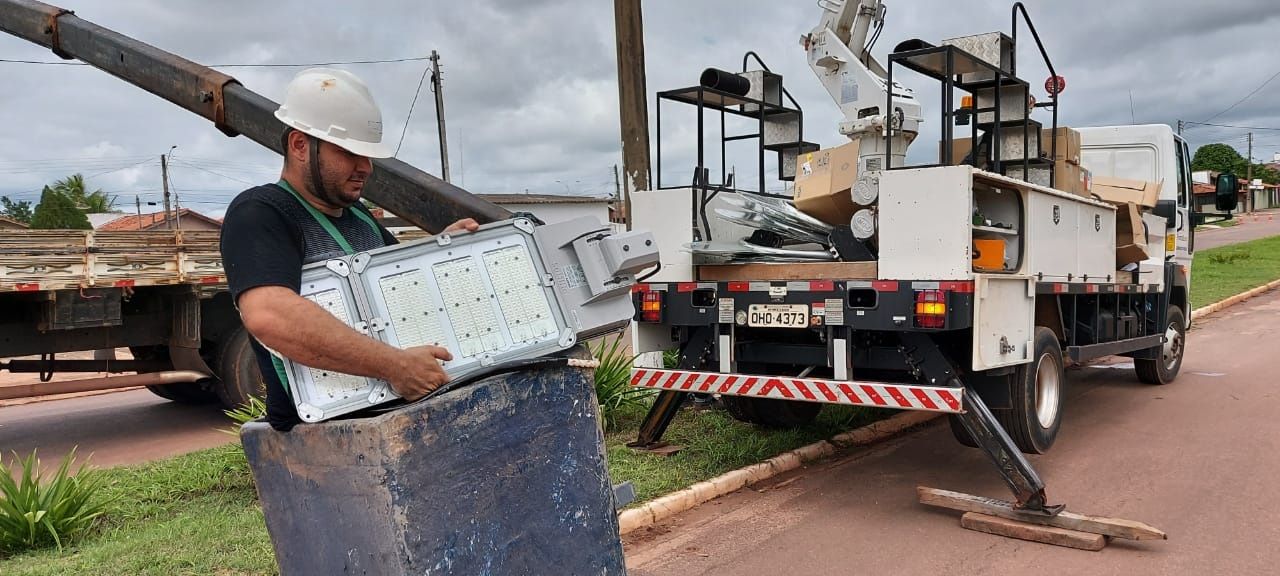 sódio por luminária pública de LED, na Avenida Carlos Dorneje.