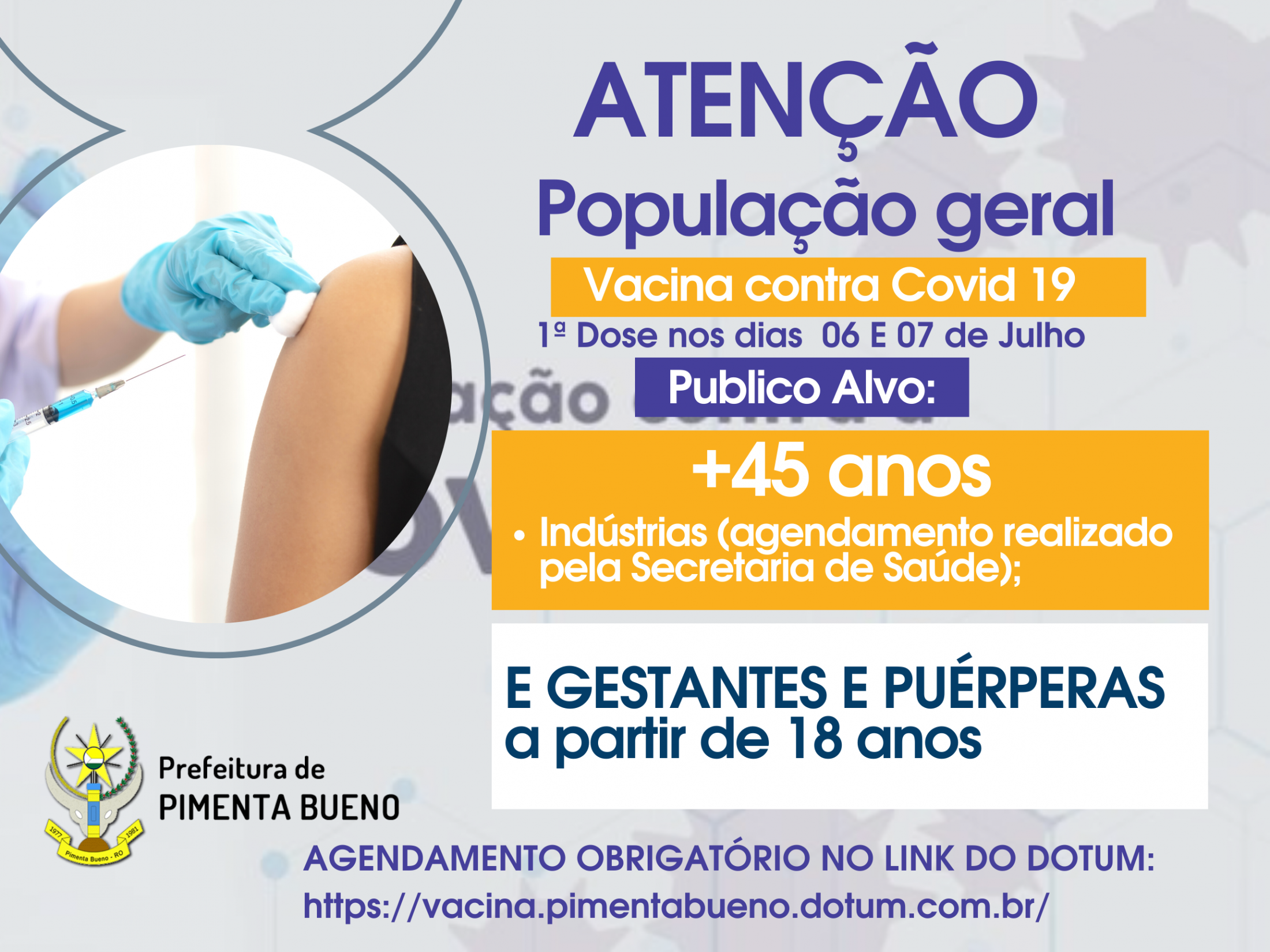 (agendamento obrigatório pelo link: https://vacina.pimentabueno.dotum.com.br/)