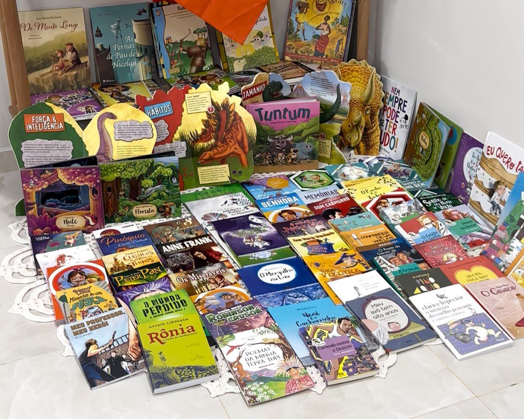 Os livros foram criteriosamente selecionados conforme a faixa etária dos estudantes, contemplando turmas desde o maternal 01 até o nono ano. A entrega atende às demandas dos projetos de leitura e rodas de leitura desenvolvidos ao longo do ano letivo.